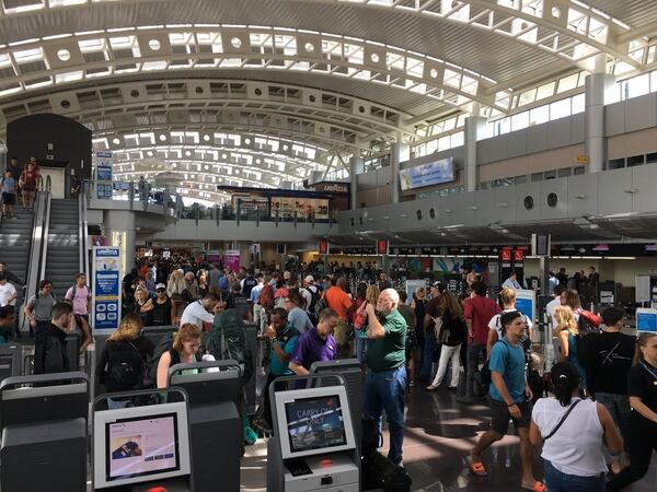 La presa de viajeros saliendo del país atrasó los vuelos del mediodía entre dos y tres horas, periodo en el que la paciencia y tranquilidad de los usuarios desaparecía.